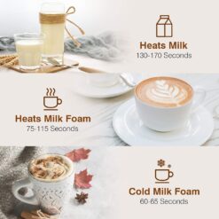 - Hot and cold milk froth for cappuccinos, hot milk for lattes