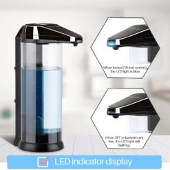- Water-resistant battery-operated automatic soap dispenser with 17 oz. capacity container. The 4*AA alkaline batteries are not included.