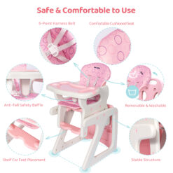 Sejoy 3 in 1 Baby High Chair Convertible Play Table Seat Booster Toddler Feeding Tray, Pink