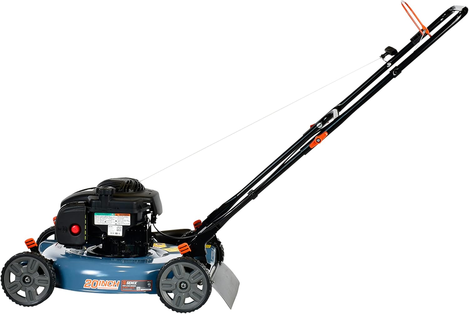 - EFFICIENT LAWN MOWING: The SENIX 20-inch gas push mower features a steel deck with a 20-inch cutting width, providing a large cutting area with high durability for small to medium size yards; The fold-down handle allows for easy storage and space-saving