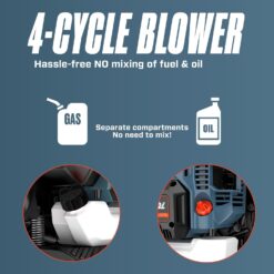 - WHAT’S INCLUDED: Gas blower comes with 5.7 oz bottle of engine oil; This outdoor power tool is covered by a 3-year limited warranty for peace of mind