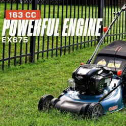 - SELF-PROPELLED WITH A RELIABLE ENGINE: Rear-wheel drive single speed self-propel feature make mowing effortless; The Briggs & Stratton 163 cc 4-cycle EXi675 engine with Prime n Pull start delivers reliable power to quickly tackle your job