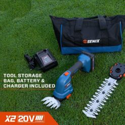 Senix X2 20 Volt Max* 2-in-1 Cordless Hedge Trimmer and Grass Shear with Interchangeable 4-Inch and 8-Inch Blades, Includes 2.0 Ah Battery and Charger (GSX2-M)