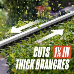 - PREMIUM BATTERY POWERED HEDGE TRIMMER: Armed with advanced features, the SENIX X6 hedge trimmer is a game-changer; Its 26″ premium dual action laser cut blades and 1-1/4″ cutting capacity allows for precise cutting of even the heaviest foliage and bushes