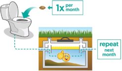 - YOU’RE JUST ONE FLUSH AWAY FROM A HEALTHY SEPTIC SYSTEM! Our monthly easy flush dissolving packets are specially formulated to help break down waste and maintain a properly functioning septic system. This is the easiest and most efficient way to prevent expensive septic tank backups and drain field repairs. Just flush one packet down your toilet each month!