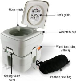 SereneLife Portable Toilet with Carry Bag – Indoor Outdoor Toilet with CHH Piston Pump & Level Indicator – 5.3 Gallon Large Waste Tank – 100-120 Flushes for RV, Camping, Hiking & Boating