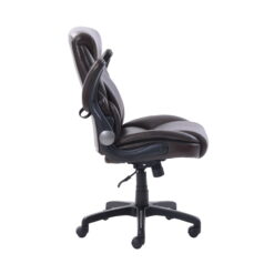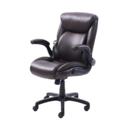 The Serta Manager’s Office Chair is a performance office chair solution that combines comfort and style. The chair seat and back features a supportive AIR Lumbar system that adapts to your body movements to provide a continuous support experience. Individual coils in the seat provide additional support by distributing weight efficiently to maximize comfort all day long. Ergonomic flip-up armrests maintain comfort for work or gaming. Seat height is adjusted with easy-to-use gas lift. The versatile chair also features tilt and tension controls and rolls smoothly on a stable 5-star base with casters. Upholstered with rich bonded leather, this chair is perfect for home or office use. Store headphones or other office accessories in the convenient rear pouch and headphone loop.