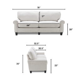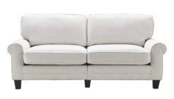 Make your living room an inviting space with this comfortable and versatile sofa. Easy to clean and soft to touch, this cozy three-person couch is upholstered with durable fabric to ensure it stays looking and feeling great. This 78 inch wide sofa is a great fit for smaller living spaces, apartments, or in a home office. This cozy couch has a wide seat that features premium cushions made with individually wrapped coils surrounded by high-density foam. The durable fabric upholstery and removable pillow-back cushions make for easy cleaning, perfect for busy families. Choose from a variety of color and material options to match your decor. Featuring rounded arms and straight-back cushions, this upholstered sofa has a timeless style that’s sure to feel at home in any living space. Serta Copenhagen Traditional Rolled Arm 78-inch Sofa, Cream White Fabric