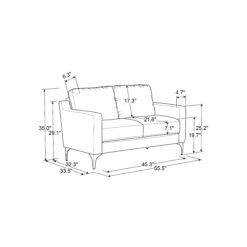 - Seat dimensions: 19.7″ H x 45.3″ W x 21.6″ D