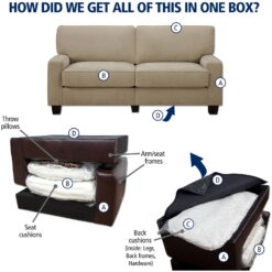 The perfect piece for just about any space requiring more seating, the Serta RTA Palisades Collection 78 in. Sofa is ideal – especially for those who want high quality and easy assembly. This handy design features one-box packaging and tool-free assembly. This sofa’s versatile, transitional design is the result of high-quality materials and top-notch construction. Featuring a hardwood frame, further supported with hardboard inner lining, this piece is packed with comfort! Ultra-wide back straps, s-coils, individually wrapped pocketed coils, and high-density polyurethane foam are all covered in a lush, premium upholstery in your choice of available color options. Poly-fiber-filled pillowed back cushions and espresso-finished feet are the icing on the cake. Perfect for those who want their comfort – but want it easy and stylish, too.