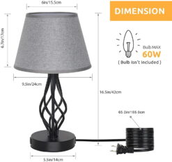 - Home Decoration and Best Gift: The flawless black spray painted metal twisted pattern base and the gray fabric lampshade combine modern and retro styles. This bedside lamp with usb port is an ideal decoration for your home, and it is also a perfect gift for your family or friends!