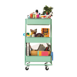 Each bin is designed to hold up to 6.6 lbs evenly distributed. Store up to 19.8 lbs across the trolley. Large swivel wheels make it easy to cart your things over carpets, rugs, and hard floors. It’s an excellent arts and crafts cart for homes and schools.