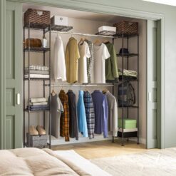 | Color/Finish | Bronze | Features | Adjustable Shelves, Adjustable Width, Expandable Closet Rod |
