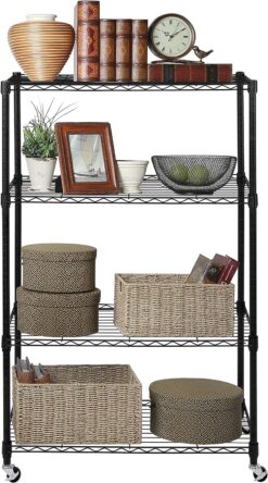 Seville Classics Solid Steel Wire Shelving Storage Unit Adjustable Shelves Organizer Rack, for Home, Kitchen, Office, Garage, Bedroom, Closet, Black, 4-Tier, 36″ W x 14″ D