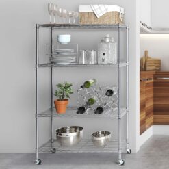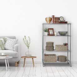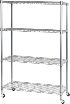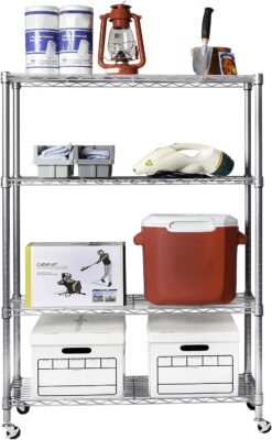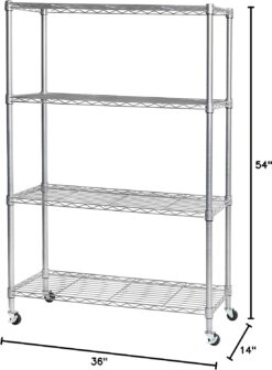 Seville Classics Solid Steel Wire Shelving Storage Unit Adjustable Shelves Organizer Rack, for Home, Kitchen, Office, Garage, Bedroom, Closet, Silver, 4-Tier, 36″ W x 14″ D
