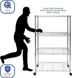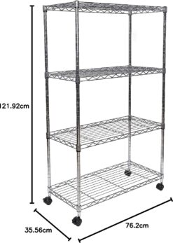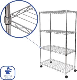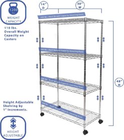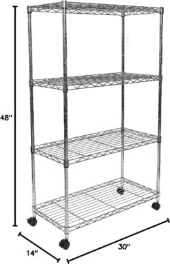 Seville Classics Solid Steel Wire Shelving Storage Unit Adjustable Shelves Organizer Rack, for Home, Kitchen, Office, Garage, Bedroom, Closet, Steel, 4-Tier, 30″ W x 14″ D