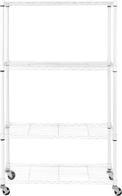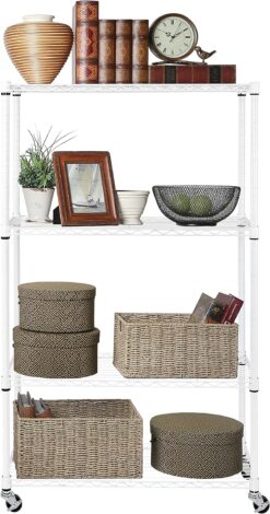 Seville Classics Solid Steel Wire Shelving Storage Unit Adjustable Shelves Organizer Rack, for Home, Kitchen, Office, Garage, Bedroom, Closet, White, 4-Tier, 36″ W x 14″ D