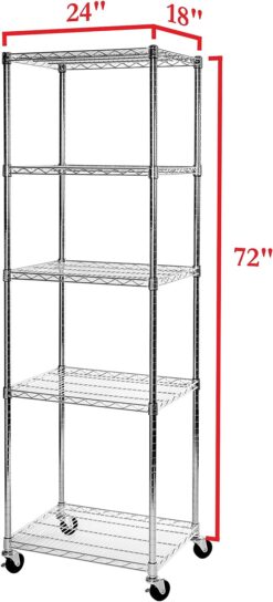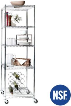 Seville Classics UltraDurable Heavy Duty NSF Solid Steel Wire Rack Storage Unit Organizer for Garage, Warehouse, Office, Restaurant, Classroom, Kitchen, 5-Tier Shelving, 24″ W x 18″ D