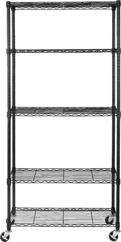 Seville Classics UltraDurable Heavy Duty NSF Solid Steel Wire Rack Storage Unit, Organizer for Garage, Warehouse, Office, Restaurant, Classroom, Kitchen, Black, 5-Tier Shelving, 36″ W x 14″ D