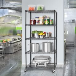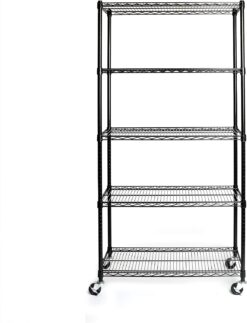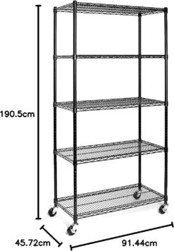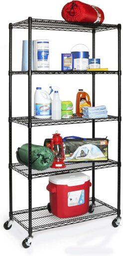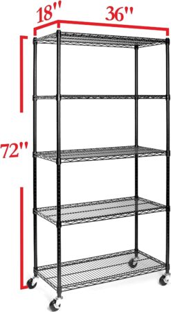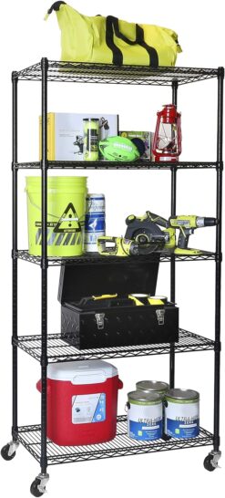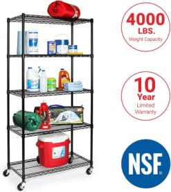 Seville Classics UltraDurable Heavy Duty NSF Solid Steel Wire Rack Storage Unit, Organizer for Garage, Warehouse, Office, Restaurant, Classroom, Kitchen, Black, 5-Tier Shelving, 36″ W x 18″ D