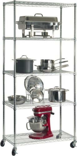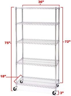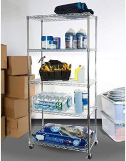 Seville Classics UltraDurable Heavy Duty NSF Solid Steel Wire Rack Storage Unit, Organizer for Garage, Warehouse, Office, Restaurant, Classroom, Kitchen, Steel, 5-Tier Shelving, 36″ W x 18″ D