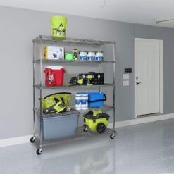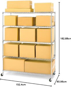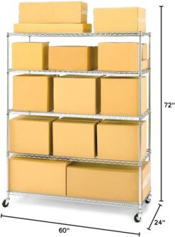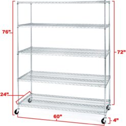 Seville Classics UltraDurable Heavy Duty NSF Solid Steel Wire Rack Storage Unit Wheels, 5-Tier Shelving, 60″ W x 24″ D
