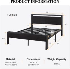 SHA CERLIN 14 Inch Full Size Metal Platform Bed Frame with Wooden Headboard and Footboard, Mattress Foundation, No Box Spring Needed, Large Under Bed Storage, Non-Slip without Noise, Black Oak