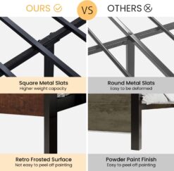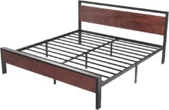 - 【Unique Design】The combination of rustic style headboard and footboard with retro frosted metal slats creates a strong industrial / rustic flair, adding an industrial and unique touch to your room. The headboard consists of a waterproof & scratchproof wood board.