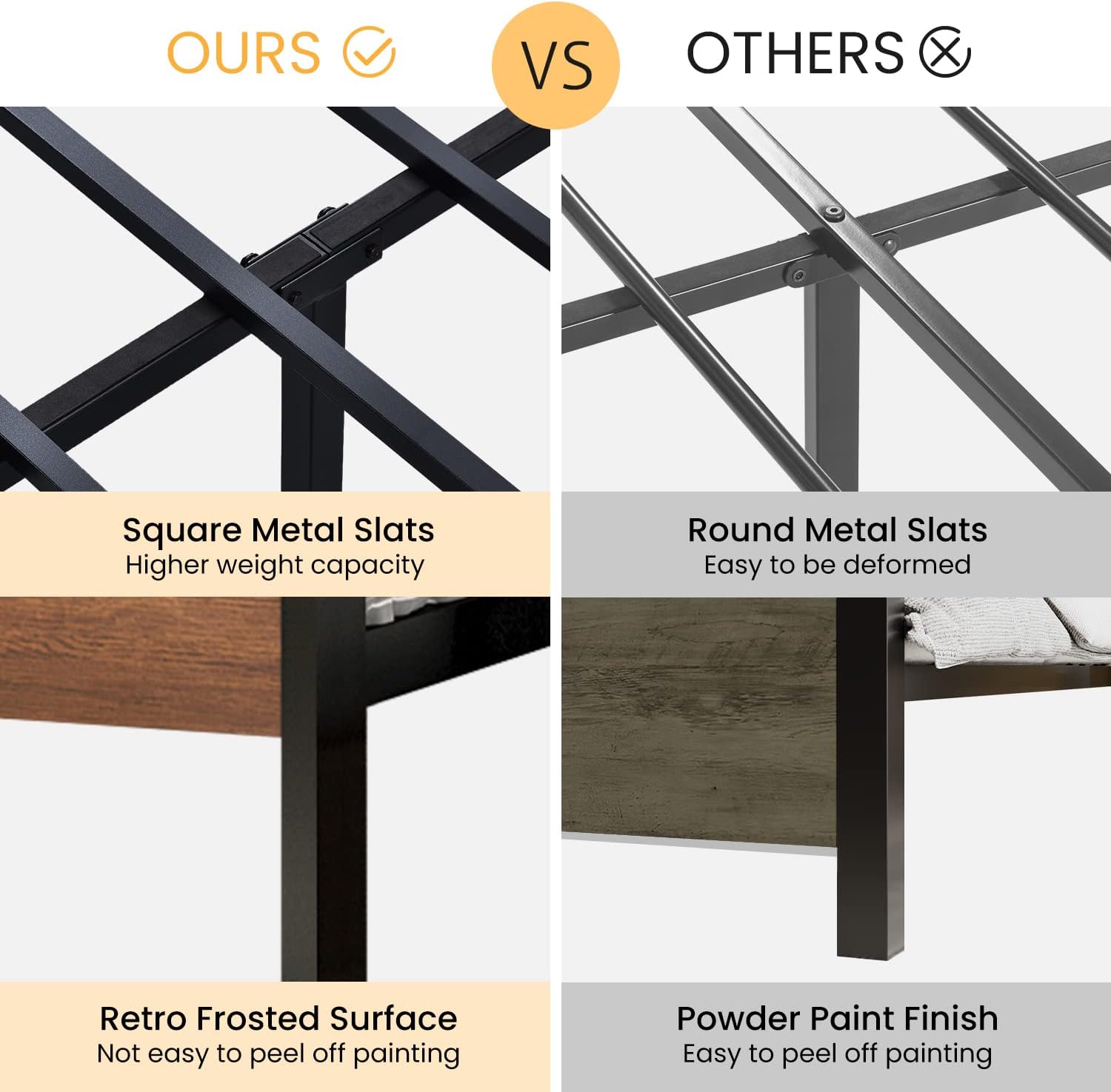 - 【Unique Design】The combination of rustic style headboard and footboard with retro frosted metal slats creates a strong industrial / rustic flair, adding an industrial and unique touch to your room. The headboard consists of a waterproof & scratchproof wood board.