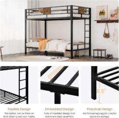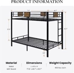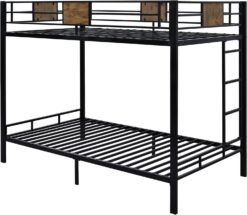 SHA CERLIN Bunk Bed Twin Over Twin Size with Ladder and Full-Length Guardrail, Metal, Storage Space, No Box Spring Needed, Noise Free, Black