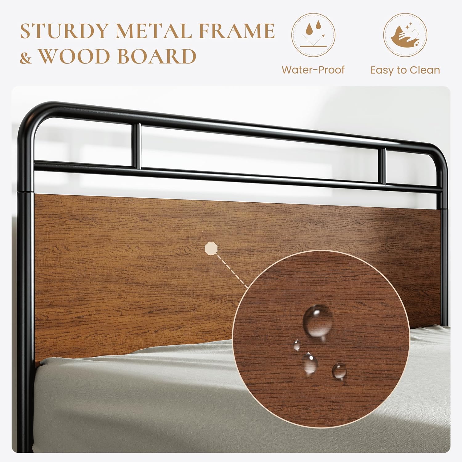 - Unique Industrial Style: This king size bed frame combines durability and style, featuring a waterproof, scratchproof wood board. Elevate your space with a rustic-style headboard, footboard, and a retro black metal pipe frame.