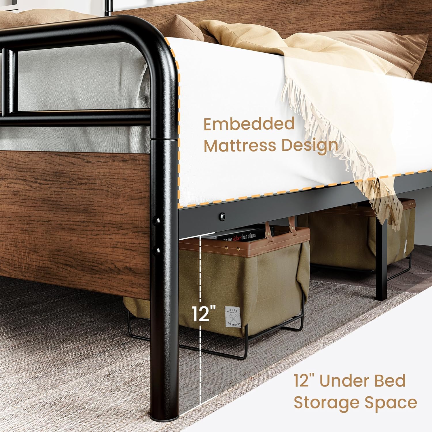 - Clever Storage: Maximize space with the 12 inch under bed storage, this king bed frame with headboard providing a smart solution for organizing bedding, clothing, or essentials.
