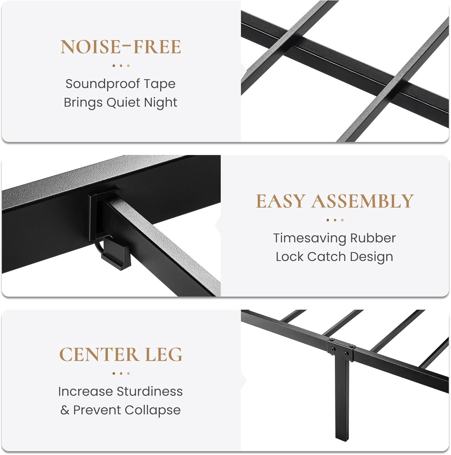 - Sturdy and Safe: Crafted with a rounded corner metal frame and 12 metal slats, this king bed frame ensures durability and safety without the need for a box spring.