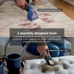 - SUITE OF ACCESSORIES: Includes two specially designed tools including to tackle tough spots and stains on carpets, area rugs, upholstery, carpeted stairs, and more.