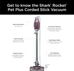 - WHAT’S INCLUDED: Shark Rocket Pet Plus Corded Stick Vacuum, Pet Multi-Tool & Pet Crevice Tool.