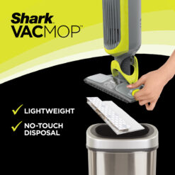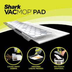Shark VACMOP™ combines powerful suction & spray mopping for a complete clean, all in one disposable pad. Vacuum dry debris, absorb wet messes, and toss the pad. The lightweight, cordless system easily charges so it’s ready to go. VACMOP™ comes with everything needed to complete the clean: 2 disposable pads, and a 12-oz. bottle of VACMOP™ multi-surface hard floor cleaner.
