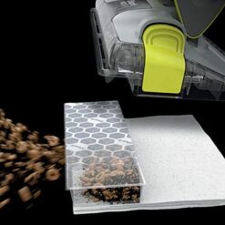 - The VACMOP Pad vacuums up and locks away debris in an innovative built-in dirt chamber