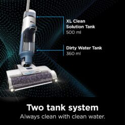 Shark Hydrolase Cordless Pro XL WD201 vacs, mops and cleans itself with powerful suction and hydro mopping at the same time. It deep cleans hard floors and cleans area rugs. Includes a self-cleaning, antimicrobial brush roll to help prevent odors and bacterial growth on the brush roll 2-tank system to separate clean and dirty water multi-surface concentrate with odor neutralizer, XL clean water tank. Brush roll treated with antimicrobial substance to preserve roller and resist bacterial odors on the brush roll.