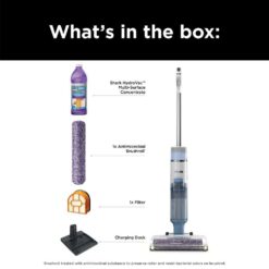 - WHAT’S INCLUDED: Shark HydroVac Cordless Pro XL 3-in-1 multi-surface cleaner, 1 multi-surface concentrate, 1 antimicrobial brushroll*, 1 replacement filter and 1 charging dock. *Brushroll treated with antimicrobial substance to preserve roller and resist bacterial odors on the brushroll