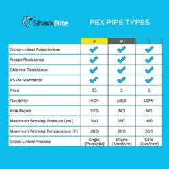 SharkBite PEX tubing is cross-linked polyethylene tubing for a wide range of residential and commercial plumbing applications. PEX Pipe is durable, flexible and corrosion resistant. Manufactured without an oxygen barrier for potable water systems (available in white, blue, and red). A repeating SharkBite imprint patterns provides a visual aid to determine if the tube has been inserted all the way into the SharkBite Push-to-Connect Fitting. This feature only works if the tubing is cut between the SharkBite imprint patterns. In addition to Potable Water Supply SharkBite PEX meets UL Standard for Plastic Piping in Fire Systems.
