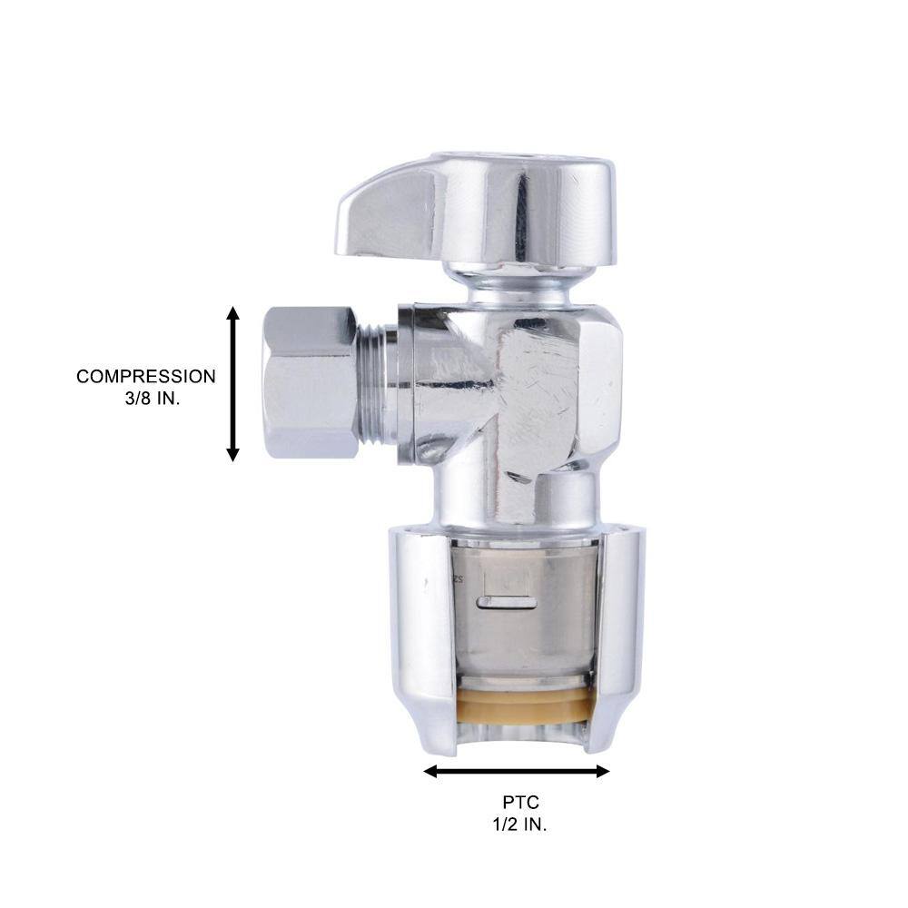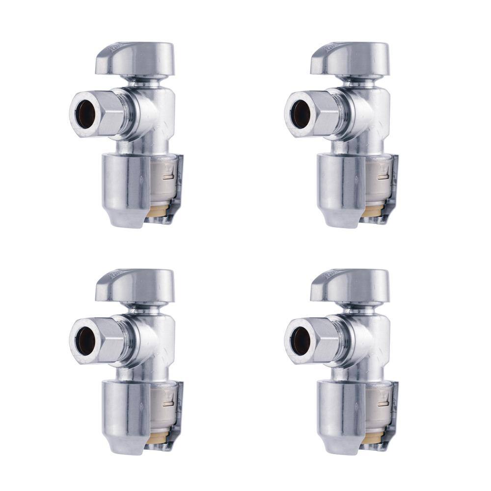 SharkBite UR23036J4 Max 1/2 in. Push-to-Connect x 3/8 in. OD Compression Chrome-Plated Brass Quarter-Turn Angle Stop Valve (4-Pack)