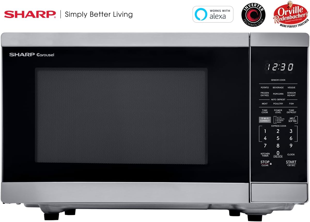 SHARP Countertop Microwave Oven Compatible with Alexa Orville Redenbacher’s Certified with Removable 12.4″ Carousel Turntable, 1000 Watt, 1.1 Cubic Feet, Stainless Steel