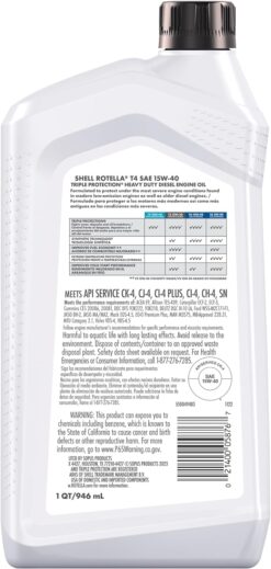 Shell Rotella 550049483-6PK T4 Triple Protection 15W-40 Diesel Engine Oil (CK-4), 1 Quart (Pack of 6)