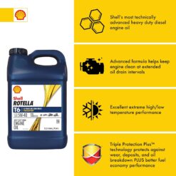 Shell Rotella T6 5W-40 diesel engine oil is a full synthetic motor oil that features exclusive Triple Protection Plus technology, formulated with fully synthetic base oils plus advanced additives to protect against wear, deposits, and oil breakdown. It also provides better low temperature flow and increased fuel economy performance, without compromising durability, compared to conventional SAE 15W-40 oils. Shell Rotella T6 5W-40 Full Synthetic motor oil is suitable for virtually all modern low-emission heavy duty engines and older hard working diesel engines (consult your owner’s manual for heavy duty engine oil recommendations). With its wide range of specifications and approvals from many of the world’s leading engine makers, it is an excellent choice for on-highway fleets, general haul, construction, agriculture, public-transport operators, and diesel pick-up trucks. Exceeds the requirements of the following industry specifications: API: CK-4, CJ-4, CI-4 PLUS, CI-4, CH-4; ACEA E9. Meets or exceeds the following OEM requirements: Allison TES 439; Caterpillar ECF-2/ECF-3; Cummins CES 20086, 20081; Detroit Fluid Specification (DFS) 93K222, 93K218; Ford WSS-M2C171-F1; JASO DH-2, JASO MA/MA2; MAN M3575; MACK EOS-4.5; MB-Approval 228.31; Volvo VDS-4.5, 4. For technical questions, contact the Shell Technical Help Desk.