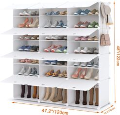 - 48 Pair Large Shoe Cabinet: 3 By 8 Tier Shoe Rack provides a large space to store shoes, can store 48 pairs of shoes, enough for your family needs, Dimension:47.2″(L) x 12.6″(W) x 48″(H).