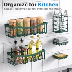 Shower Caddy 5 Pack,Adhesive Shower Organizer for Bathroom Storage&Home Decor&Kitchen,No Drilling,Large Capacity,Rustproof Stainless Steel Bathroom Organizer,Shower Shelves for Inside Shower (Blackish Green)