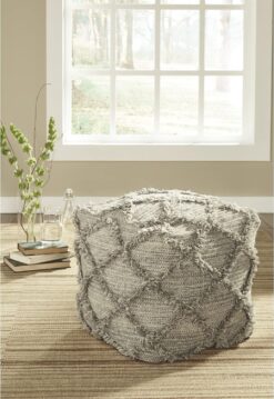 Signature Design by Ashley Adelphie Chevron Natural Wool Pouf, 16 x 16 In, Neutral Gray