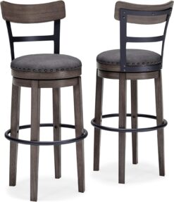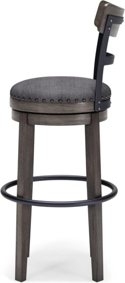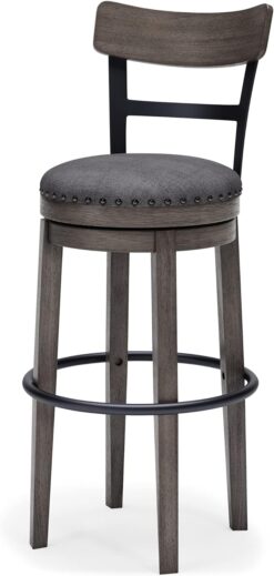 Signature Design by Ashley Caitbrook 30″ Farmhouse Bar Height Upholstered Swivel Barstool, Gray
