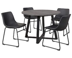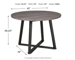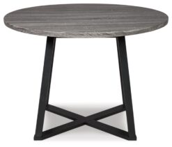Signature Design by Ashley Centiar Mid Century Round Dining Room Table with Metal Legs, Gray & Black