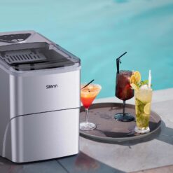 - SELF-CLEANING & PORTABLE: Silonn ice Maker machine is portable and efficient with size of 12.3 x 8.7 x 12.5 inches. Press the ON/OFF button for 5 seconds to start the self-cleaning process.
